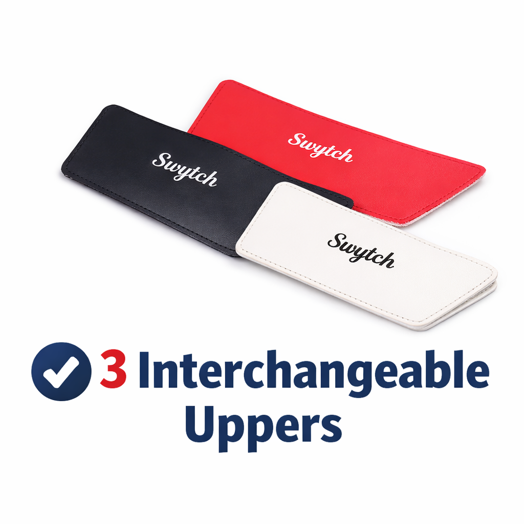 This is not your regular slide—you get one strong orthopedic sole plus three interchangeable uppers (clean white for a fresh look, bold red to stand out, and classic black for everyday wear), so you can switch your style in seconds with no tools and no stress.