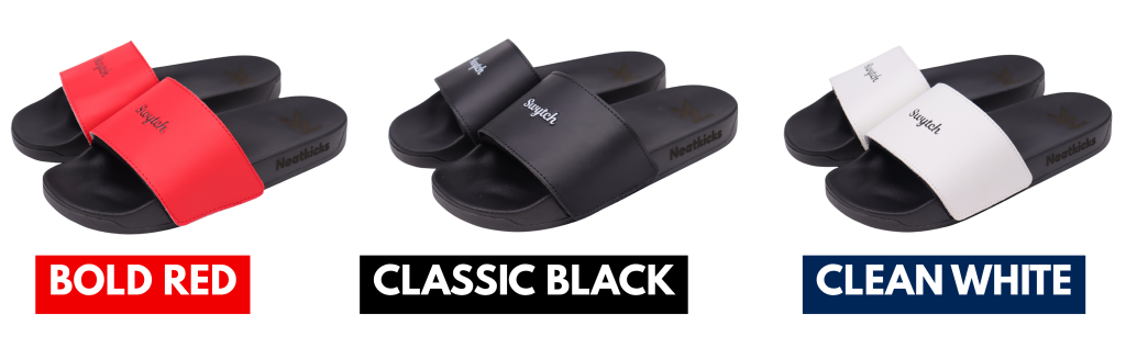 Say hello to the Neatkicks Sywtch Interchangeable Slides — the smartest footwear upgrade you didn’t know you needed.